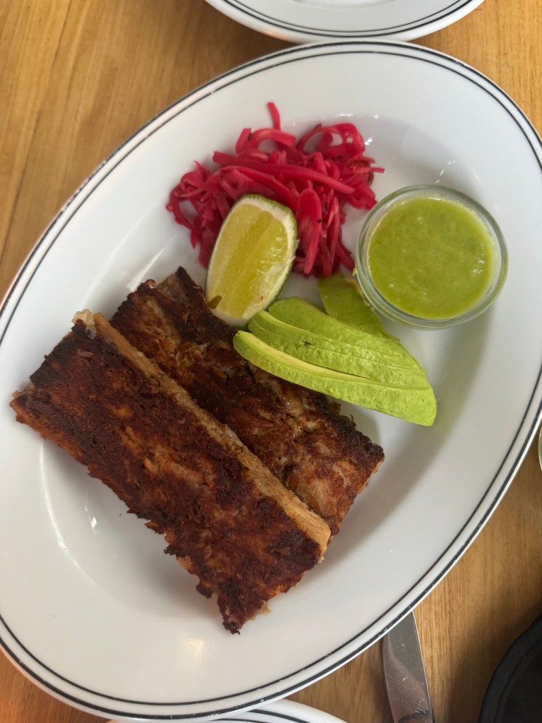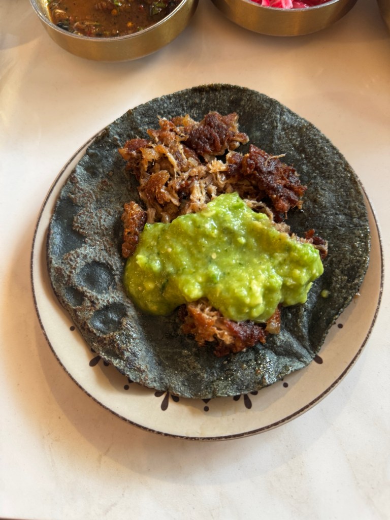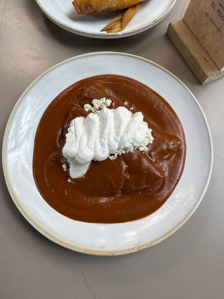 - Molino Pujol is the fast casual spot, owned by Michelin star winner Pujol. Known for their mole sauce, Molino Pujol offers small plates like avocado quesadillas, mole chilaquiles, and carrot tamales. I really like their cafe de olla, too. It’s a sweetened cinnamon coffee.