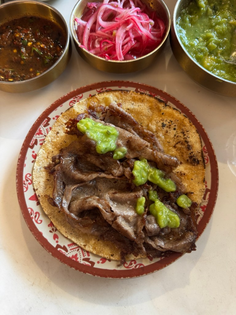 - Taqueria Orinoco has locations throughout the city. It’s a quick, delicious meal. They offer just three proteins: pastor (trompo), steak (res), or chicharron (fried pork) prepared in different ways. Plus they serve their tacos with really good fried potatoes.