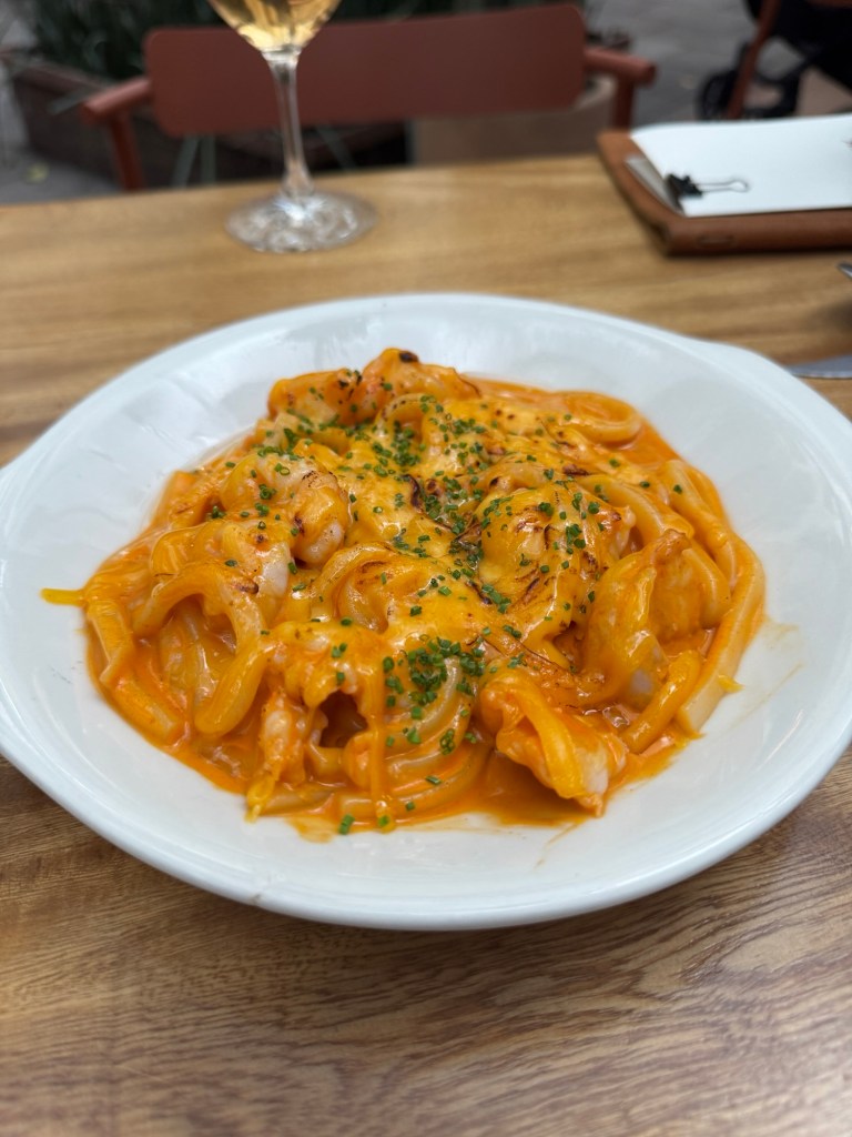 - PLONK has an abbreviated but delicious menu in a small restaurant just off the edge of Parque Mexico. We had these udon noodles in a creamy gochujang sauce that blew me away.
