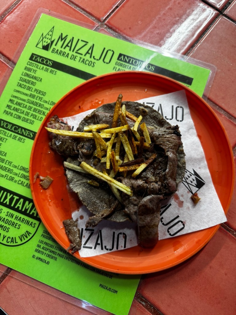 - MaizAjo might be the best tacos you’ll eat in CDMX. They’re known for their tortillas and tacos. I love their ribeye with little fries on top and their saudero with langonesa (that’s confit pork + spicy sausage). Put your name down at the door to eat at the standing room only taco bar or make a reservation in advanced for their restaurant upstairs. Either way, the experience is delicious.
