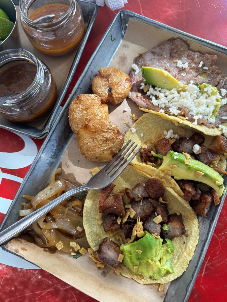 - FRITANGUITA tacos is by the same people from MaizAjo. They have a little cart serving up confit tacos with several different kinds of sauces on them.