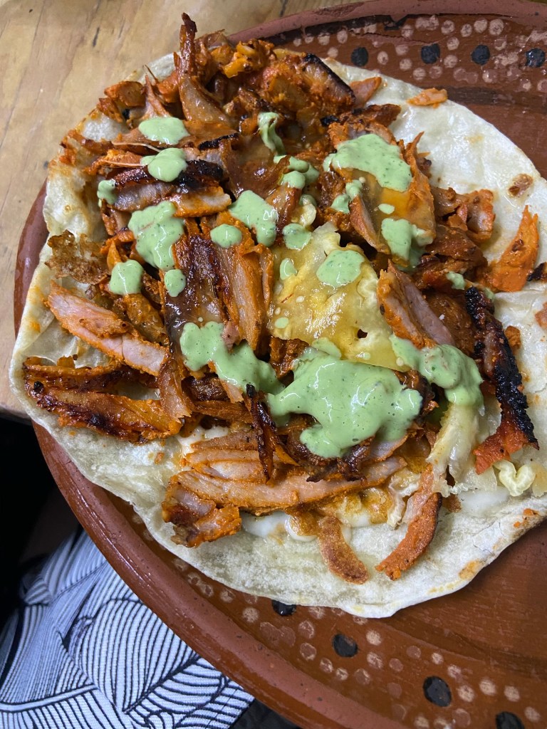 Tacos de Cabeza– Head tacos are made on a flat-top grill, covered with a towel and steamed. This creates a super moist, delicate, fall apart meat. I know eating “head” sounds gross (it’s usually cheek or jowls), but I promise it’s delicious.